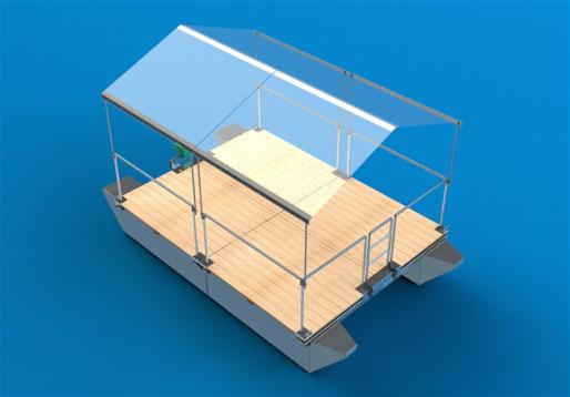 | KonstruktionBei der Konstruktion des Funmarans wird die Modulbauweise angewandt, dadurch ist eine Vielzahl von individuellen Gestaltungsmöglichkeiten gegeben. Das Floß besteht aus mind. zwei Schwimmkörpern sowie einer Profilabdeckung. Durch die einzigartige Schwimmkörperbeschaffenheit ist der Funmaran sehr leicht und gut manövrierbar. Der Funmaran besteht aus mind. einem Modul und kann beliebig erweitert werden. Die Module sind in den Abmessungen: • 2,4 m x 2,0 m und 3,0 m x 2,0 m erhältlich.